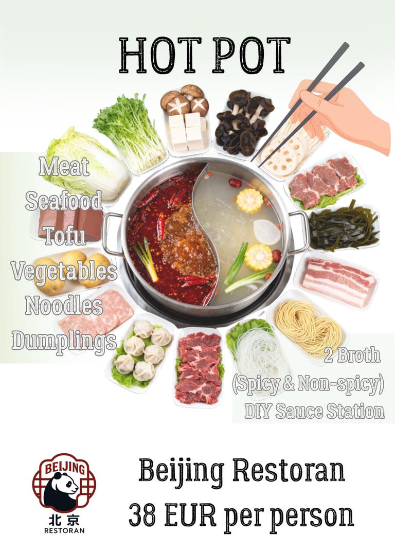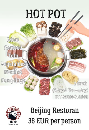 Hot Pot is a popular dining style where ingredients, such as meat, seafood, vegetables, and tofu, are cooked directly at the table in a pot of hot broth. Unlike typical Chinese dishes, diners cook their own food and control the cooking time.